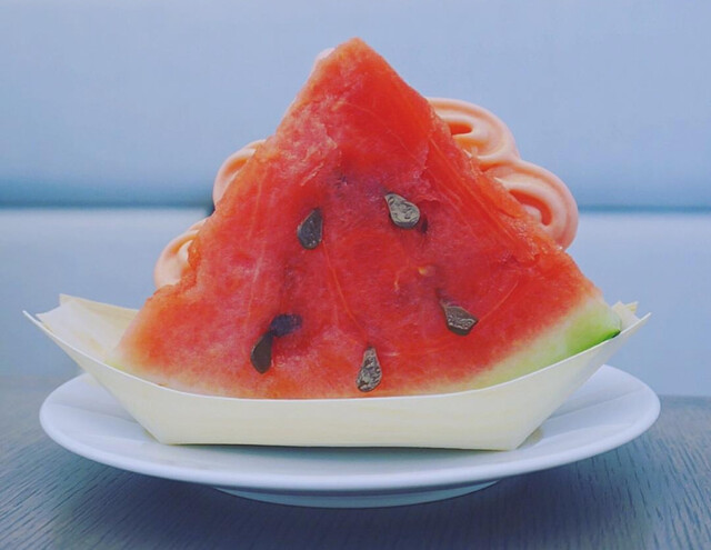 つい中をのぞきたくなるような立体的な円形で、全体的にはお抹茶味で、下側にはフルーティなパイナップルソース。抹茶とパイナップル、あまり食べたことのない食材の組み合わせで楽しめました。
