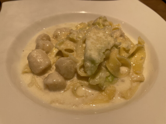家族の食事会で伺いました。季節のコース料理をいただきました。サラダは海の幸が乗って見た目も美しく、野菜の美味しさに驚きました。栗とポルチーニ茸のフリットが絶品。栗の甘さと塩味の合わせが最高。パスタも2種類いただき、トリュフ香るクリームパスタも軽い。鮟鱇のポアレがまた美味い。メインはあか牛リブロースをチョイスしました。デザートまで大満足の夜でした。ご馳走様でした! 詳細を見る