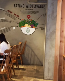 ユニークなクイックサービスサラダバーのコンセプトで、自社農場で生産した安全で新鮮な野菜の使用にこだわり、お客様に50種の新鮮トッピングと20種のホームメードドレッシングのチョイスをご提案致します。
