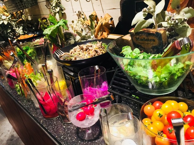 また話題な方との期間限定コラボレーションメニューや、肉・魚料理はもちろん、グルテンフリーパスタなど、様々なお食事やスウィーツをご用意しています。2号店でしか見られないフォトジェニックな華道家プロデュースによるビュッフェ台は必見です!