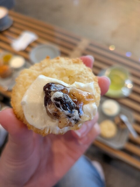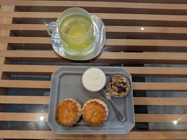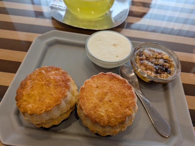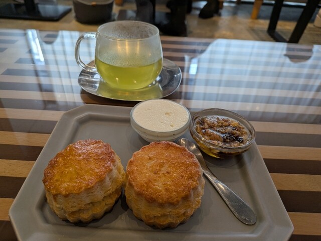 抹茶のパンケーキとも迷いましたがスコーンが売りで人気とのことでスコーンに。