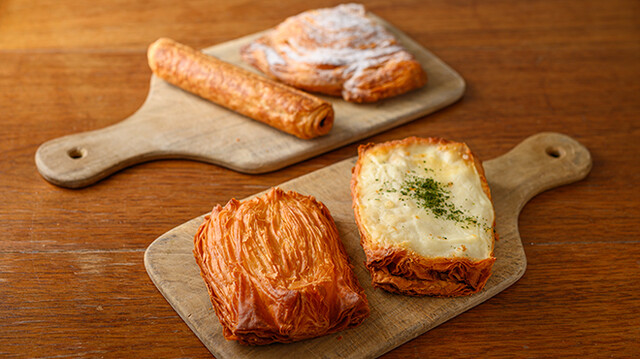 1階ベーカリーでは焼きたてパン、クッキー、カヌレ、ギフトを販売。