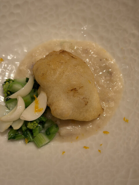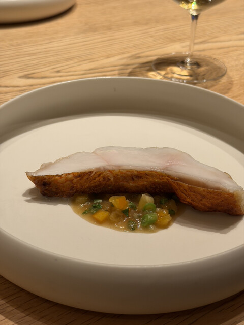 見た目からして綺麗ですが、食べると身がしっとりしていて、下に敷かれた生地や野菜とのバランスが絶妙。フレンチだけど、素材の味がストレートに飛び込んできます。