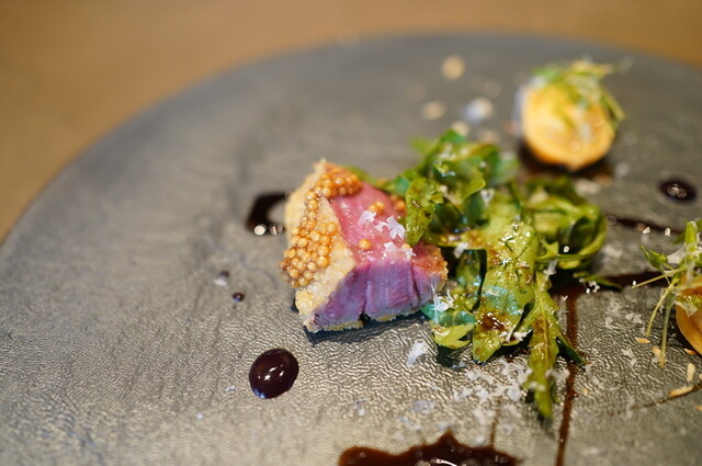 北青山のタワーマンション2階に構える「sio aoyama」。入口から店内に入ると、都会的で洗練されつつも肩肘張らないカジュアルな空気が流れ、日常の延長線で“良いもの”を楽しませてくれるレストランだという第一印象を受ける。今回は半個室に案内されたが、正直なところ隣の4〜5人組の声がかなり響き、落ち着いた食事という点ではやや残念だった。とはいえ、そのマイナスを軽々と覆してきたのが料理の完成度であ...