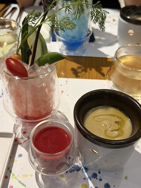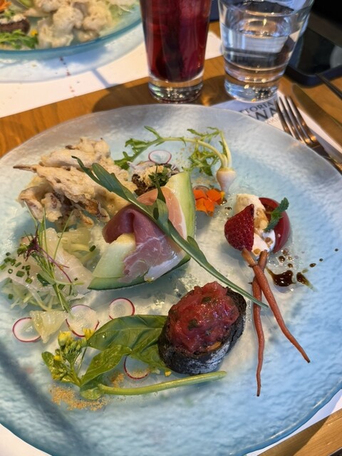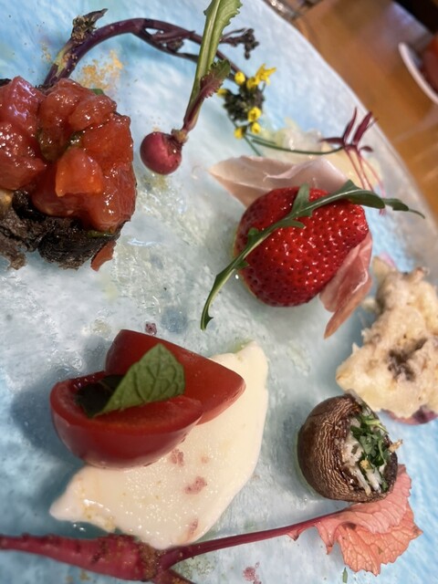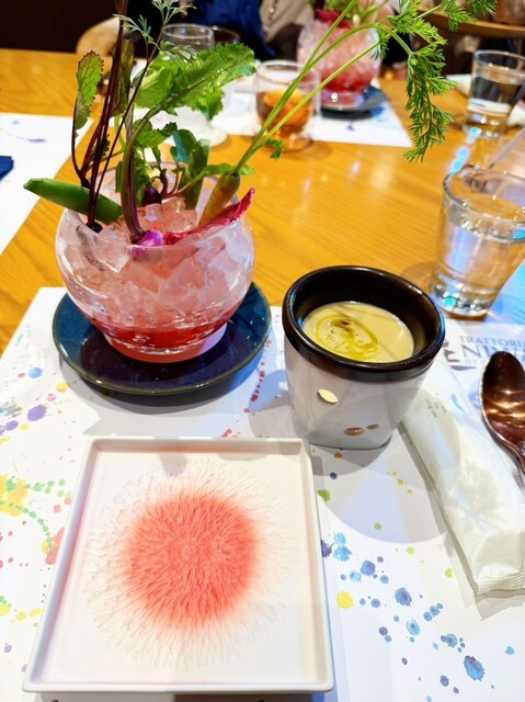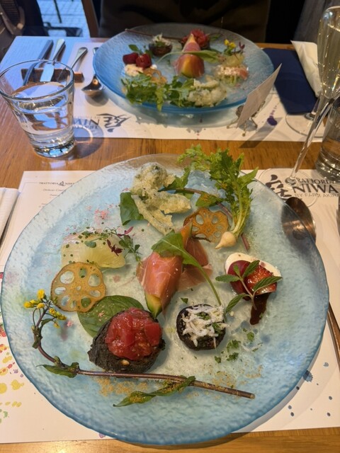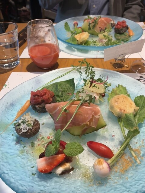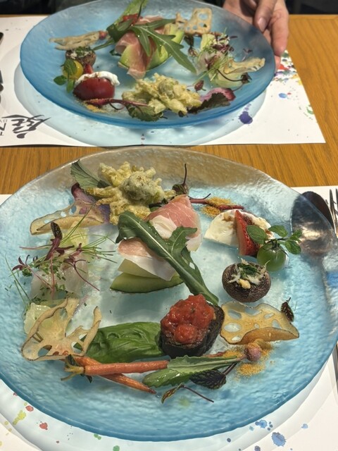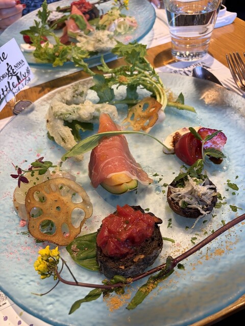 お皿が運ばれてきた瞬間にテンション上がります!盛り付けが本当に華やかで、テーブルの上が春になったみたいに綺麗。