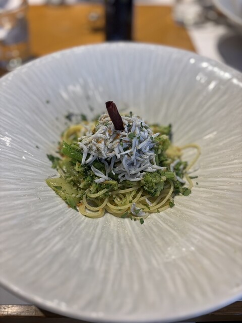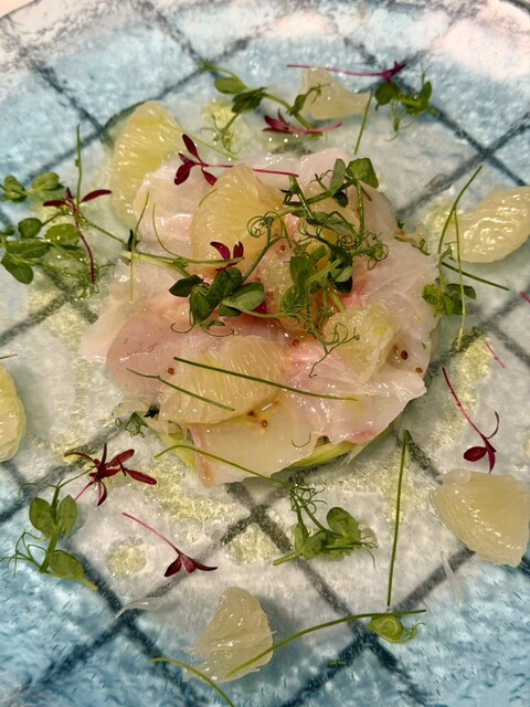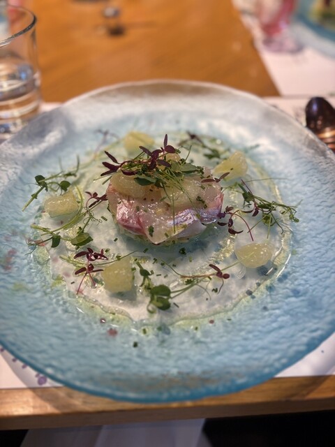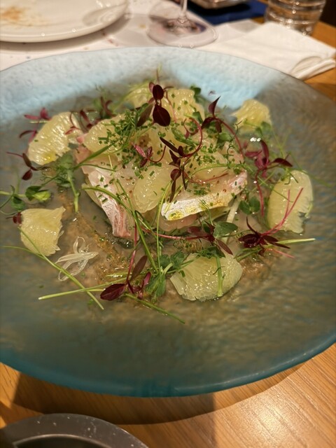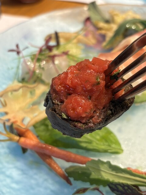 まず登場したのは、この店の象徴ともいえる「旬野菜のバーニャカウダ」。氷を敷き詰めた器から、まるでブーケのように立ち上がる色鮮やかな野菜たち。にんじん、ラディッシュ、葉もの野菜、それぞれが新鮮そのもので、口に含めば土の恵みをそのまま...