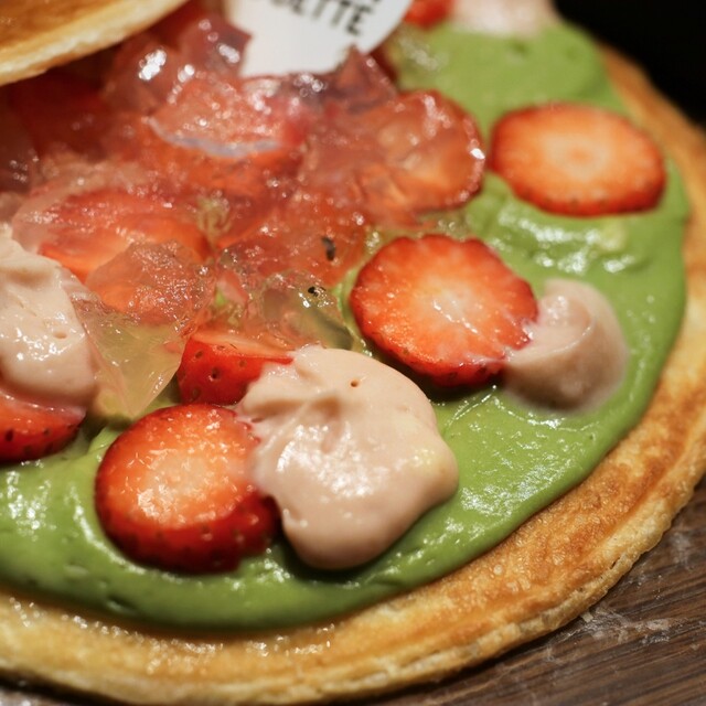 桜香るクリームと西尾抹茶を使用したクリームにスライスイチゴ。
