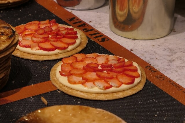 焼き上げたアーモンドのパイ生地に、クレームドリュクスを使用した苺のミルフレッセ。