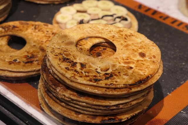 状のものでは無く、コチラは円形にした生地でフィリングを包むスタイル。