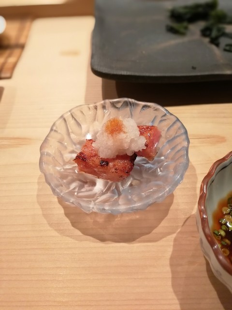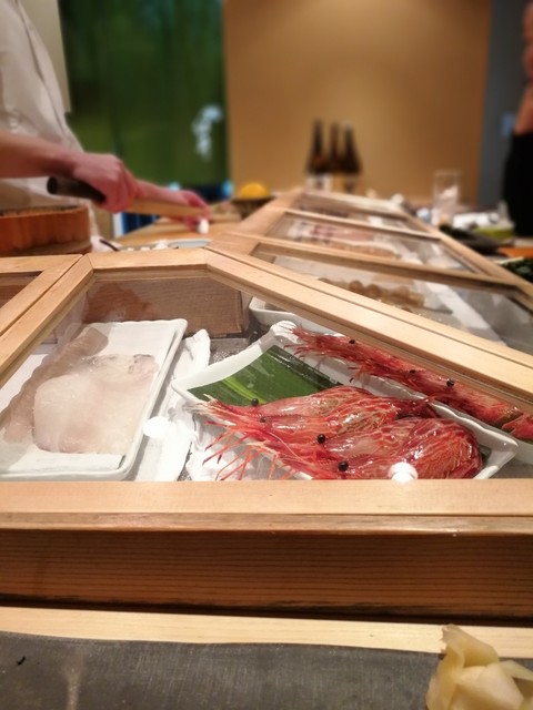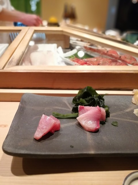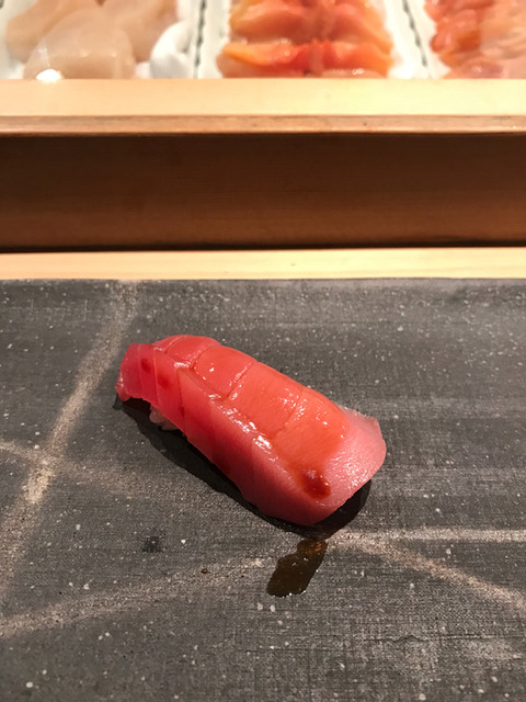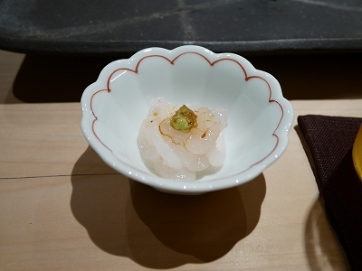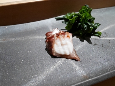 また臼井にいきました。予約で活あわびをお願いしておき、全2個ともいただきました。ここのあわびは固くてコリコリ、味は噛むと甘さが口に広がる。もちろん、固いのが嫌な方は柔らかい煮あわびがありますが。あと、ミル貝とカレイ、車海老、コチ、タコ、カニ、白イカなど全て美味しかったです。私専用にネタは太目に切ってもらい、日本酒と合わせて食べ応え抜群でした。