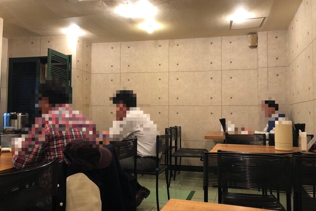 一人客用の大きな相席テーブルと小さないくつかのテーブルがあります。