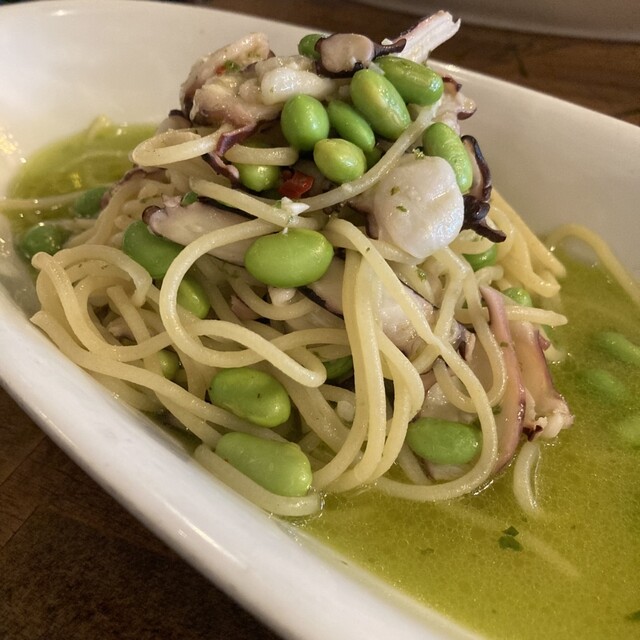 ジェノベーゼソースが美味しい。 昼は サラダ付きパスタ,なかでもジェノバソースか明太子が絡んだパスタ推し。 夜は サラダ,魚介,肉,パスタから1品ずついただくと整う。 [2025.9.13土夜] 3週間ほど前から電話予約の上家人と2人往訪。 昼夜曜日問わず居心地が良く、良い素材を品の良い調... 詳細を見る