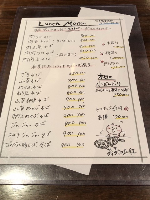 最近だんだん暑くなってきたので、次回はメニューの下側にあった、ジャージャーそば、ゴマだれ豚しゃぶそばなど、冷たいお蕎麦メニューを食べに行ってみます。
