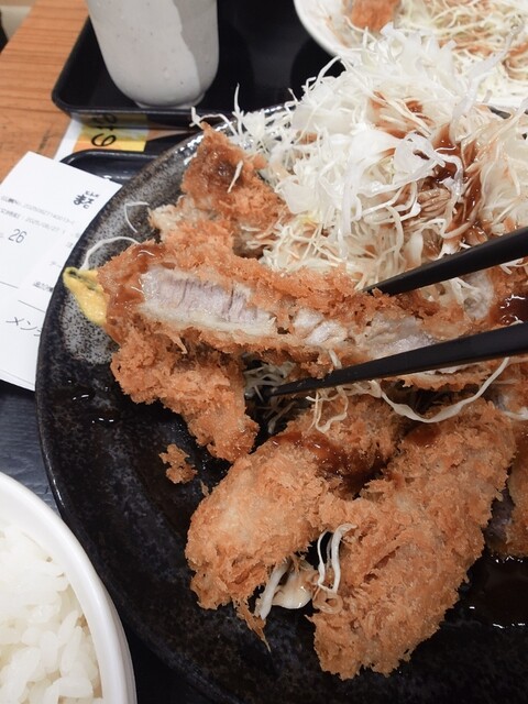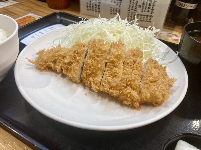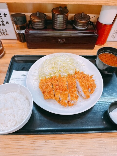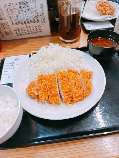 土曜日の10:50くらいに到着しました。 開店前でも5人が待ってますね。 開店と同時に入店し、カウンター10席くらいと2人用テーブル8つくらいのうちのカウンター席に案内頂きました。 店員さんにロースかつ定食(800円)をお願いして、水を飲みつつ待ちます。 入店順に配膳されてきますが、... 詳細を見る
