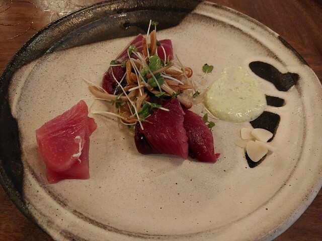 マグロはご自分で釣ったので、冷凍してない生でした。アッサリおいしい