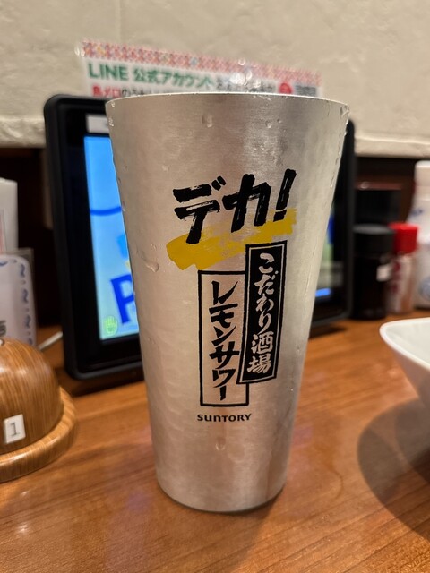 注文はタブレットなのでメニューを見て『メガ角ハイボール 658円、鶏なんこつの唐揚げ 438円、焼きそら豆 438円』...