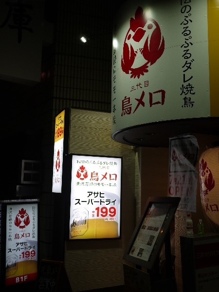 外苑前に用事が有り、用事まで時間が有ったので軽く飲もうと思い、歩いていたら『三代目 鳥メロ 外苑前スタジアム通り店』が有ったので入る事にしました♪