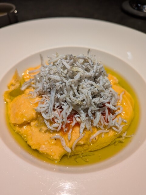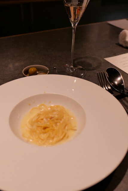 平日の17時に予約して訪問。こちらは個室とカウンターがあり、今回はカウンターで。コースも選択可能ですが、やはり好きなものを好きなだけ選べるアラカルトがこの店の真骨頂。パスタの種類も豊富で、メニューを眺...