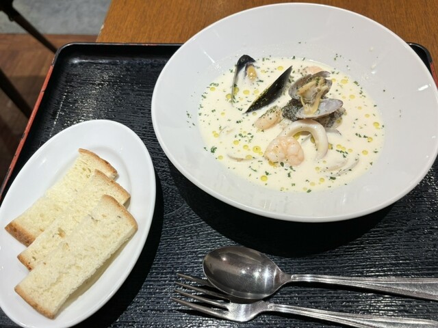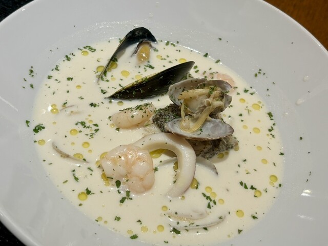 祝日夜18時半に予約をして訪れました。 店が通りの奥側に位置しているため、注視していないと通り過ぎてしまうかもしれません。 店内はカジュアル雰囲気で、お客さんは数組のみ。 まずはスパークリングワインのグラスと、3種の選べるタパス、濃厚ブイヤベースを注文しました。 タパスで選んだのは、大人の為のポテトサラダ・こやりいかのセビーチェ・揚げナスのバルサミコ和えです。 ポテサラはタルタル... 詳細を見る