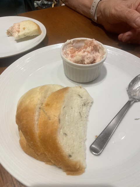 ○ 当店のお通し ○おかわり自由です!!マグロのタルタルとパンが食べ放題で580円!! |
