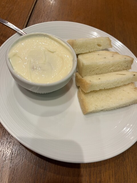 ガーリックマヨソースとマグロのタルタルをよく混ぜてから柔らかいフォカッチャにたっぷりつけて食べます。タルタルも食べ放題なのが嬉しい!