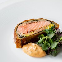 爽やかな柑橘の香りが引き立つサーモンのミキュイをはじめ、彩り豊かな前菜2品、新鮮なお魚料理、そして選べるお肉料理までご堪能いただける充実のコースです。食後には、季節のデザートとこだわりのお飲み物もご用意。ランチタイムに、ちょっと贅沢なひとときをお楽しみください。