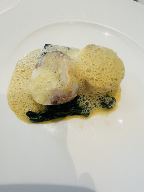 ロワールをホワイトアスパラガスのポッシェと野付産ホタテ貝のグリエ