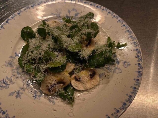 マッシュルームのサラダ、クレソン (by お店)