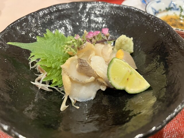 美しく美味な500gアップの間人の黒鮑の薄造り