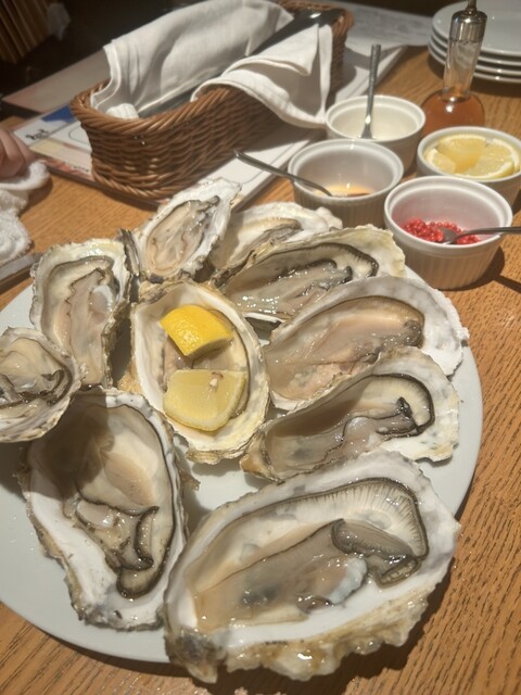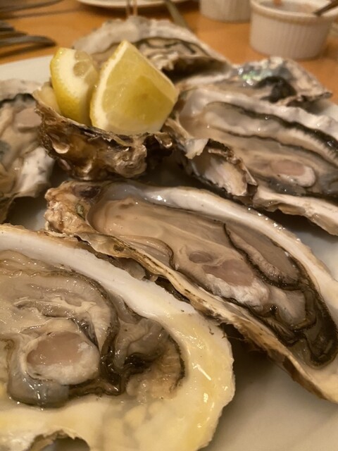 六本木駅から徒歩数分の場所にあります。 土曜の夜、予約して友人たちと4名で伺いました。 牡蠣は食べ放題コースで税抜3980円(90分コース) 今回焼き牡蠣は6月中旬までで食べられなかったのですが、生牡蠣、蒸し牡蠣は提供されております。 まずは白ワインで乾杯。 牡蠣は旨味があり身が大... 詳細を見る