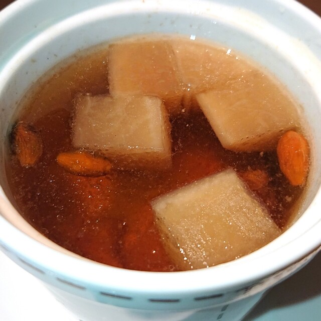 お酒は青島ビール、サッポロ黒ビール、ハウスワインをボトルで3本、ピータン、黒酢の酢豚、麻婆豆腐、油淋鶏、大根餅、小籠包、餃子、五目チャーハンのクラッシックな料理を...