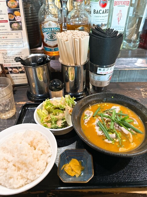 14時半頃来店。 カレー麺並盛 (980円) 辛味(120円)を別皿で注文 ランチタイムが11:00〜17:00まで営業されており、 タイムサービスで半ライスが無料でいただけます。 ランチ時間が17時までと長いのは嬉しいですね。 卓上にセットされたエプロンを着用し、料理を待ちます... 詳細を見る