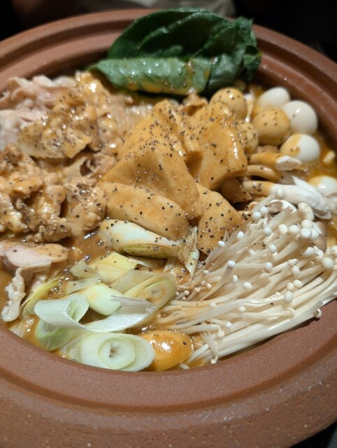 この季節、もっともおすすめしたいのは土鍋で煮込む名代「かれー鍋」★特製ルーが放つまろやかでスパイシーな香りが食欲をそそる逸品で、豚肉、油揚げなどから染み出す旨みがカレーと合わさり、さらにキノコや野菜に溶け込む味わいは、まさに今までに食べたことのない感動の味わい!もちろん〆のおじやや麺もお忘れなく。酒の種類も、おつまみも多数揃ってリーズナブル。鍋を囲んで居酒屋感覚で盛り上がろう!