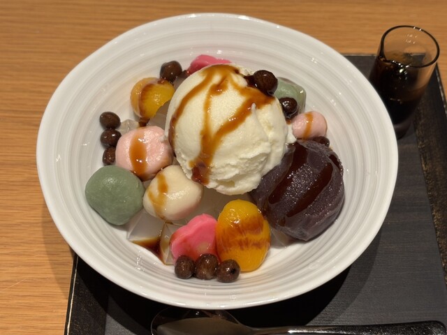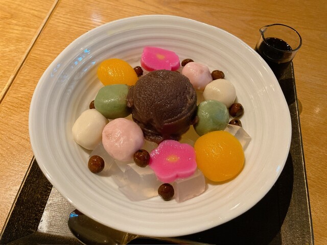 麩あんみつは白玉の代わりに生麩が使われていて、もちもち食感がたまらなく美味...