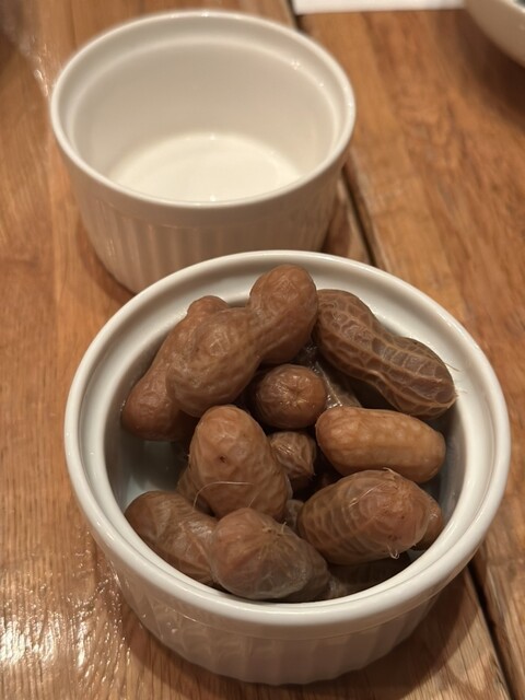 お通しには、出汁に浸した落花生が登場!手で食べるのが食べにくかったけど、しっとりした落花生は初めてで面白かったです!