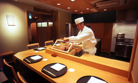 寿司のうまさはネタの良しあしだけではありません。毎朝築地に通い、最高のネタを吟味することは当然ですが、それを支える酢飯と技術の三位一体があってこそです。そのうまさをぜひ当店でご賞味ください。 また、京割烹での修業を活かした酒肴の数々と厳選したお酒も多数ご用意しております。 西麻布での夜をゆったりとしたカウンター、個室でお楽しみください。