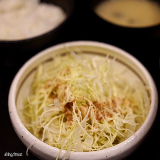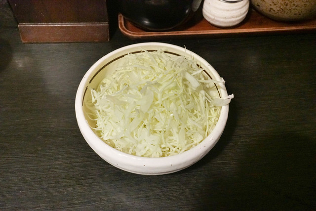 すぐに千切りキャベツが来た。おかわりも出来るらしい。