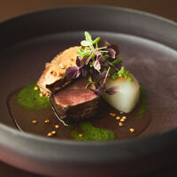 旬の冬食材と贅沢素材を組み合わせた全8品の至高のシグネチャーシーズナルコース【Symphony】 蓮根の擦り流しや牛頬肉の赤ワイン煮込み、白子とトリュフのパスタ、牛フィレとフォアグラ、デザートのブランデーショコラとルビーショコラまで、冬の味覚を五感で堪能できる特別なひととき。厳選ペアリングワインと共にお楽しみください。