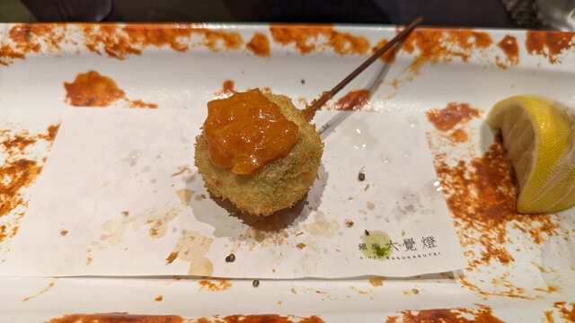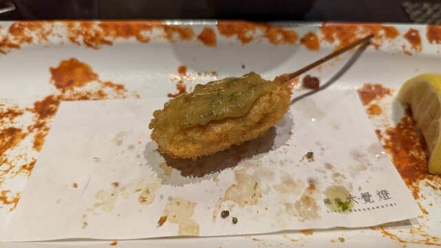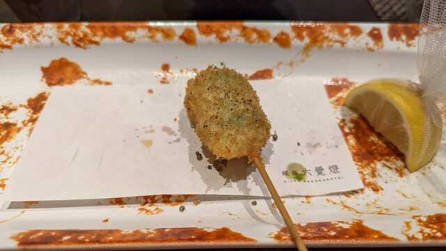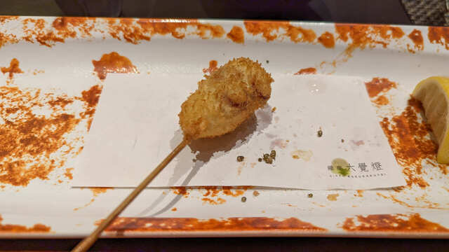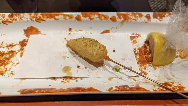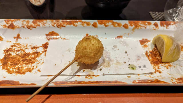ども、二日酔い飯です。今回訪れたのは麻布十番にある串揚げの名店!「銀座 六覺燈 麻布十番店」。”六覺燈”って大阪のお店なんですね。まぁ、たしかに串揚げって関西のイメージが。そこの東京進出版の”銀座 六覺燈”の麻布十番の支店って感じなんですかね。場所は麻布十番の商店街を六本木方面からていってすぐ。うどんの”くろさわ“の近くですね。普段からお店の前はよく通っていたんで...