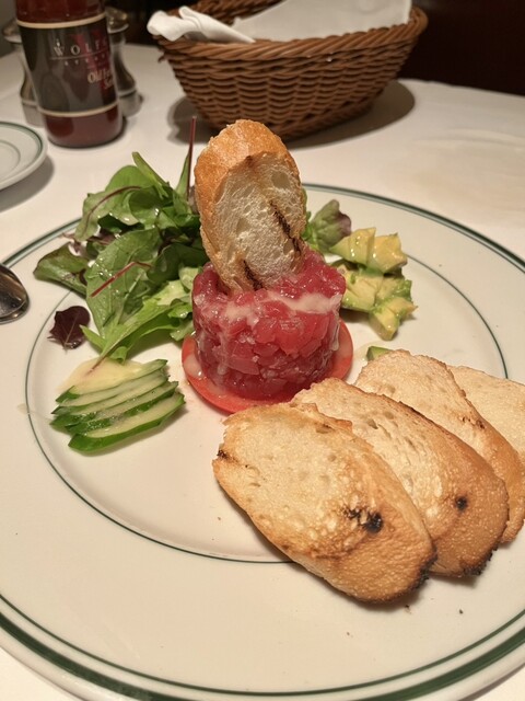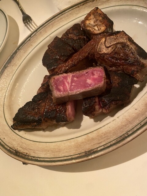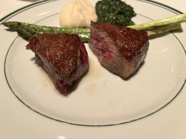 初めてニューヨークで食べてから20年くらいかな?今日は牡蠣スタート!小ぶりながら、美味しかった。エビも大きく身が締まってた。が、やはり、熟成ヒレ、最高。ホントはもっと熱々で提供されるのが好きですが。ス...