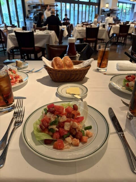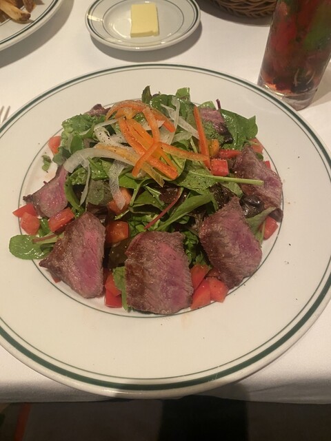 昼前にもすでに色々食べてしまっていたので、今回はステーキサラダ頼んだ。飲み物はノンアルコールのベリ...