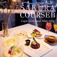 ガラス張りの開放的な美空間で、旬の素材と桜の彩りを堪能する「桜ディナーコース」を期間限定でご用意しました。コースの幕開けは、トレヴィーゾのほろ苦さと柑橘が爽やかな「フェタチーズのサラダ」。続く「カリフラワースープ」には、ふわりと桜が香るパイを添え、五感で春を演出。 メインは、タスマニアの豊かな自然が育んだ「ケープグリム産プレミアムビーフフィレ」を。肉の旨味を凝縮させたRJ特製ソースで堪能した後は、春色の「桜パンナコッタ」が優しい甘さで締めくくります。大切な方との記念日や、春の集いに、洗練された大人の空間で、この時期だけの特別な美食体験をお愉しみください。