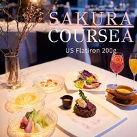 【桜 -Sakura- Party Plan 2026】開放的なテラス席で春の味覚×ステーキを楽しむディナー|90分フリーフロー付き(プレミアム赤白ワイン・生ビールなど飲み放題)3/15~4/19開催8品