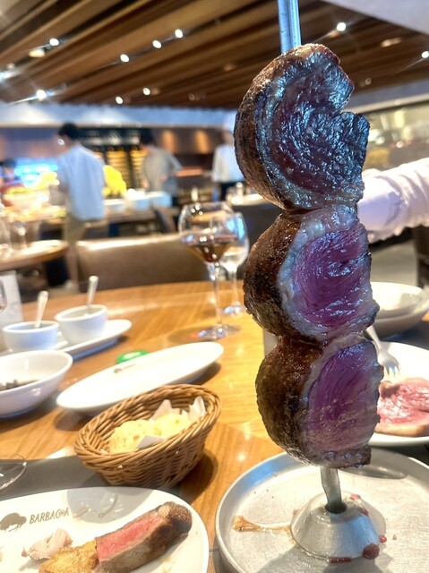 六本木ヒルズで本格的なブラジリアンBBQを堪能できるお店。 ディナーシュラスコ(¥8,500)は、王道のピッカーニャ(イチボ)からガーリックビーフ、チキン、ソーセージまで種類豊富。 どれも焼き加減が絶妙で、肉の旨味をしっかり感じられました。 特にピッカーニャは表面のカリッとした脂身と中のジュー... 詳細を見る