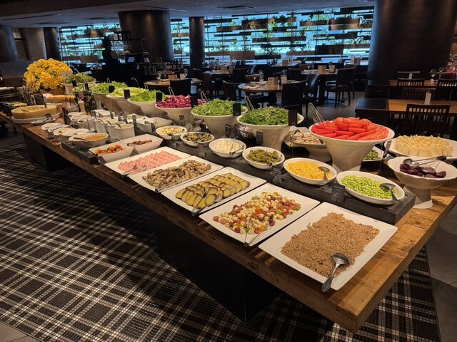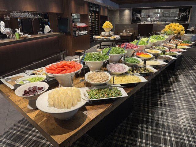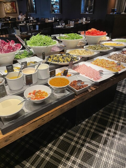 バルバッコアの六本木ヒルズ店。バーエリアも備える。広々としたスタイリッシュな空間で、ランチタイムにシュラスコを。 ビュッフェに用意されたメニューは、 ✔️希少でカラフルな... 詳細を見る