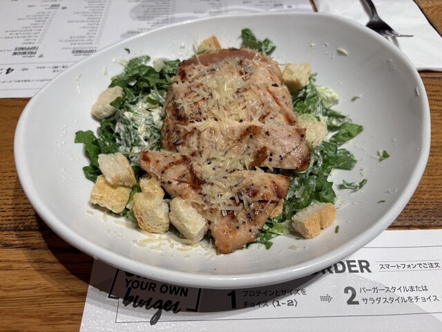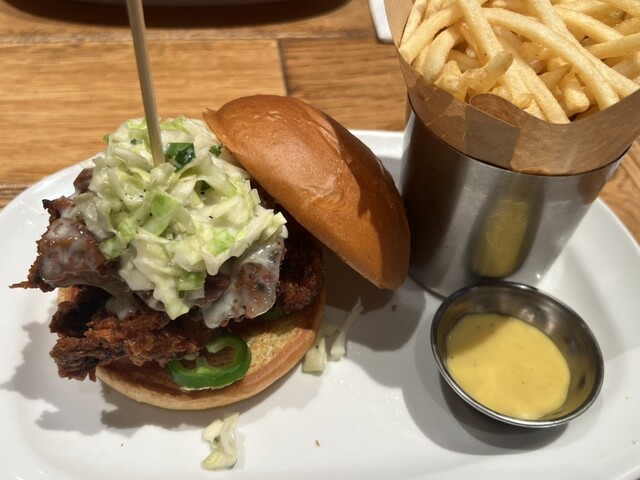 フルカスタムできるタイプのバーガーだったんですが説明も雑でよくわからなかったので、すでにカスタムされてるサウザンフライドチキンのバーガーを注文しました。