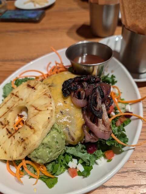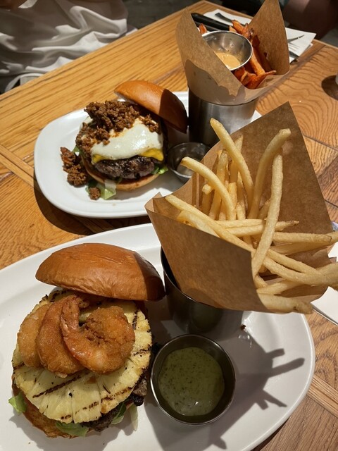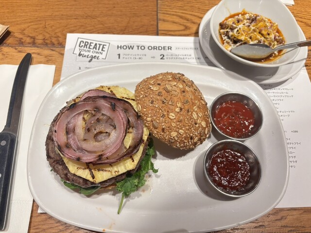 ハンバーガーは自分で好きな具材を選べて乗せ放題なので、お得な気分でした!!