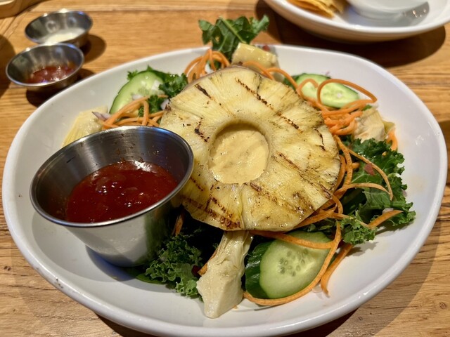 スピナッチ、ケール、グリルドレッドオニオン、パイナップル、ピクルス