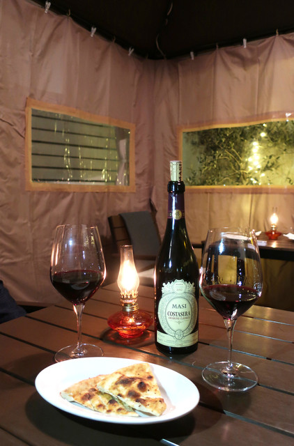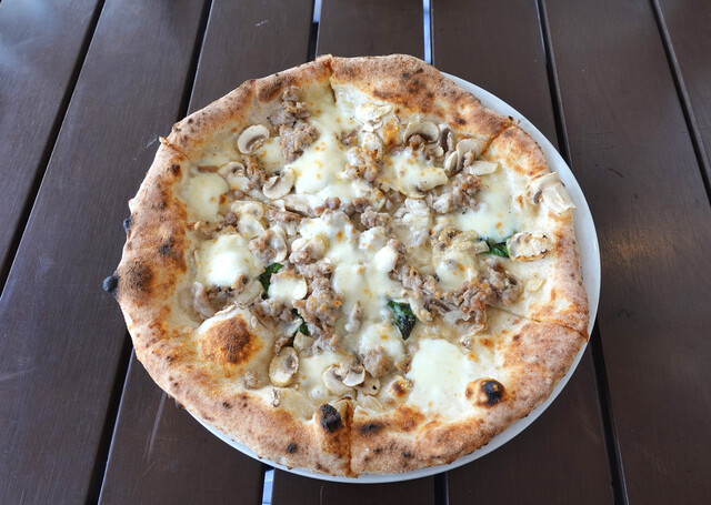 リア製ピッツァ窯から焼き立てを直々にテラスまで届けて下さって美味
