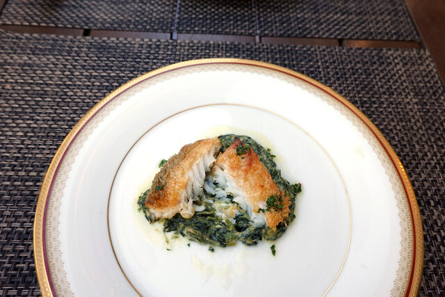 鯛のウロコ・ソテー(¥2800)は皮目が立って身はふんわり〜食感が